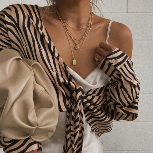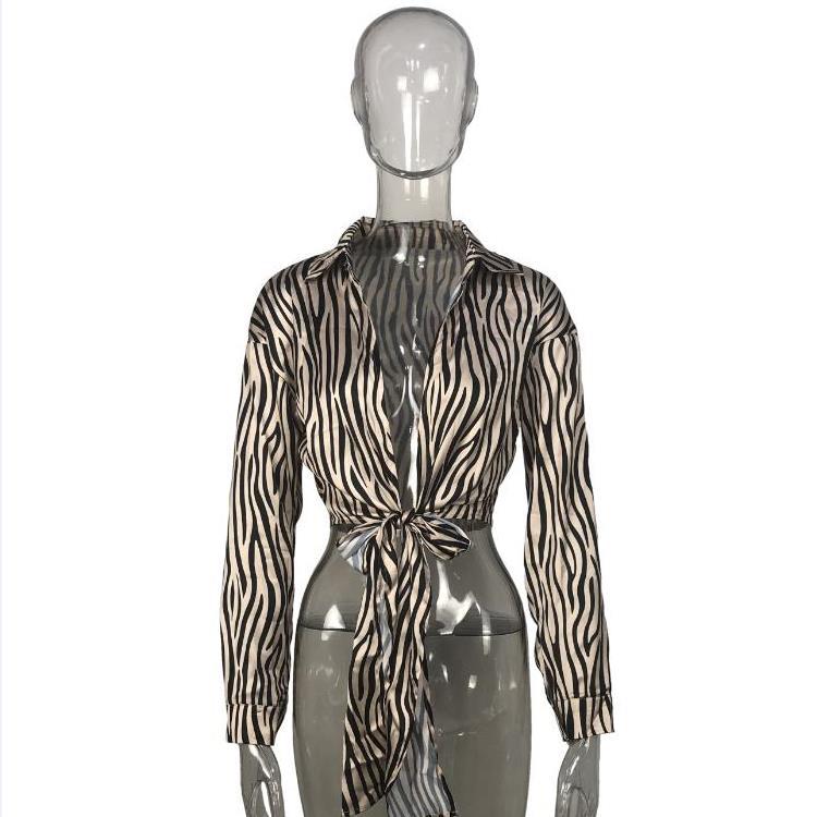 • Fashion all-match temperament long-sleeved printing tie lapel casual shirt top