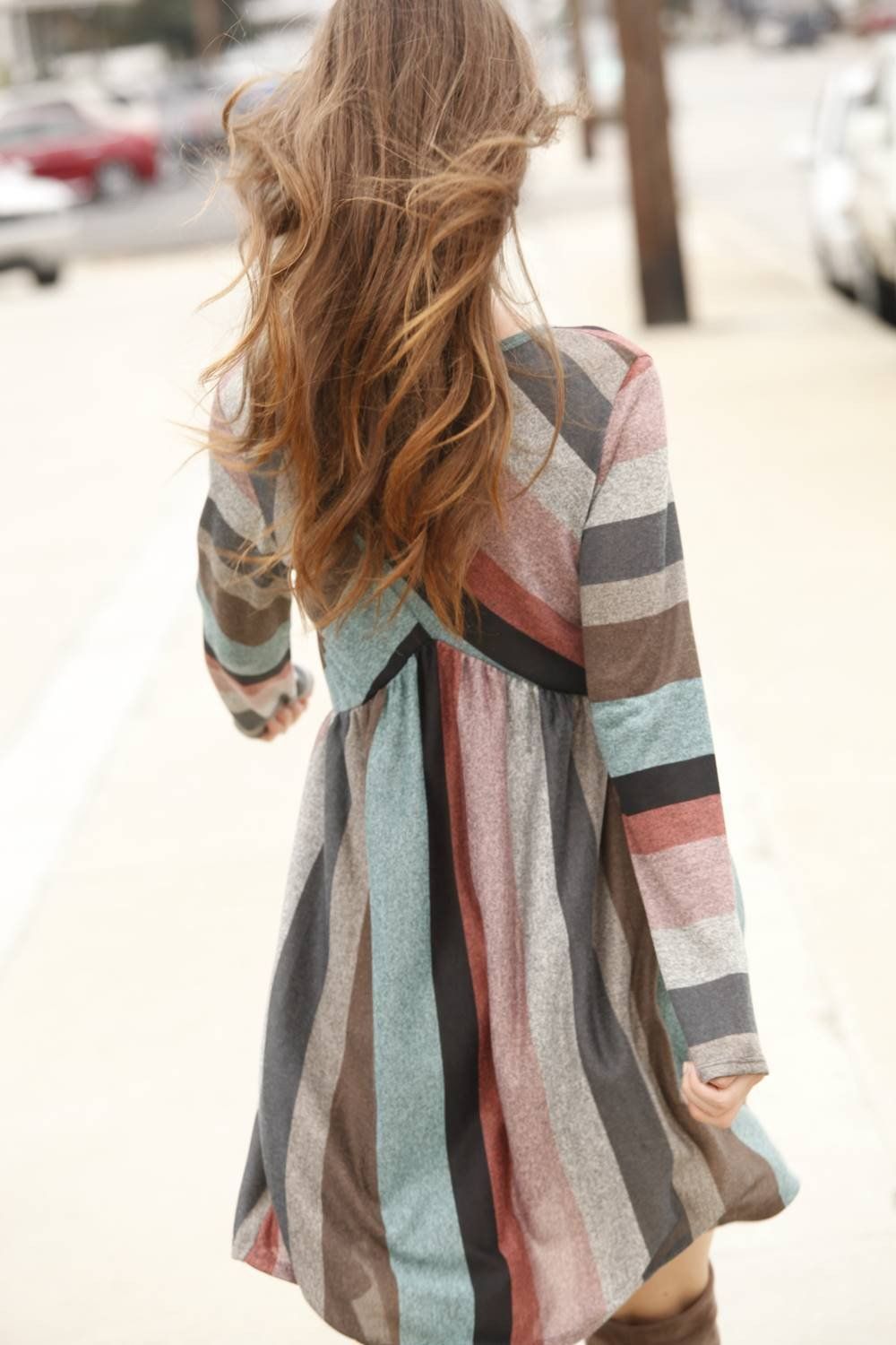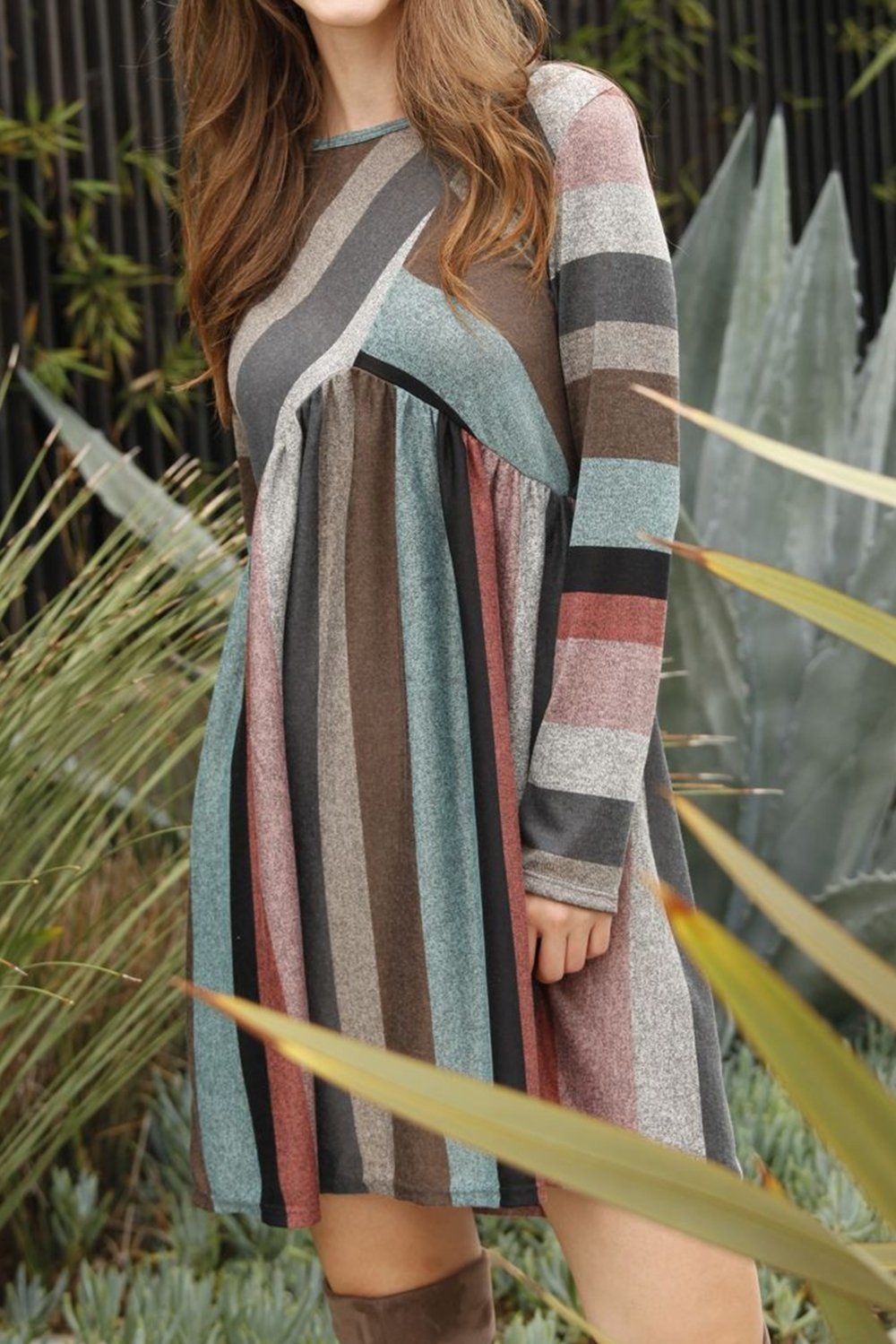 Casual retro striped round neck waist casual dress