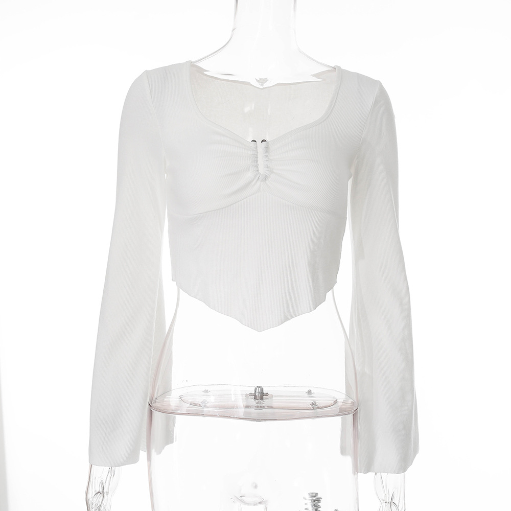 • Fashion all-match sexy slim solid color square neck long sleeve T-shirt